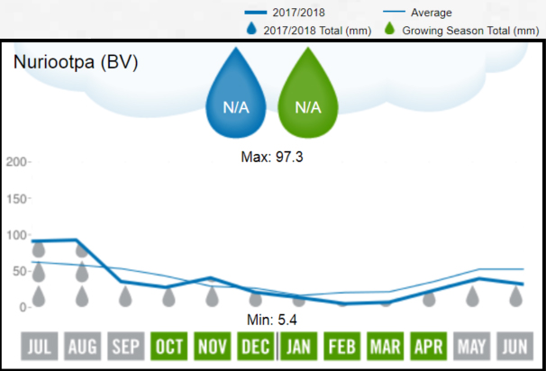 The growing season started off well, with Winter 2017 rainfall around 10% higher than average. However, Spring rainfall was only 78% of average in Barossa Valley (BV) and 98% in Eden Valley (EV), and December rainfall was only 57% of average in BV (88% in EV).